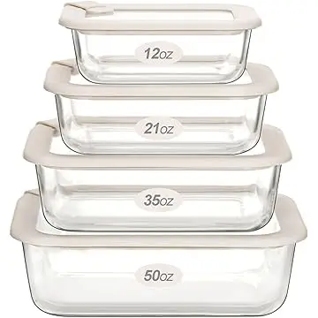 5. Glass Food Storage Containers with Glass Lids: Glass storage containers are a modern kitchen must have for keeping food fresh and organized. With matching glass lids, they keep an organized look and feel durable. A smart upgrade from plastic, these kitchen essentials add a touch of everyday luxury